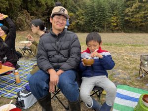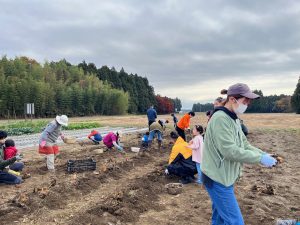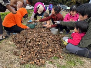 今日はお約束のストレス発散大会、そうサトイモ掘りです。普段は来ない6年生のお兄さんたちもやって来てくれました。総勢42人!