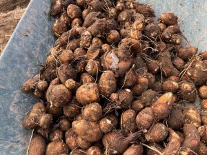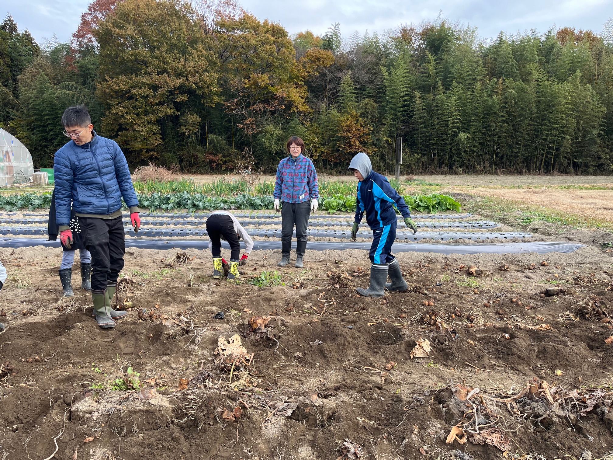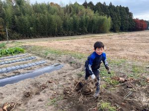 3泊4日のうち我が家で2泊。サトイモや落花生の収穫、そら豆とエンドウの種蒔きも。おまけに夏野菜の残骸の始末もお願いしちゃいました。里芋の収穫にはハマっていましたよ。