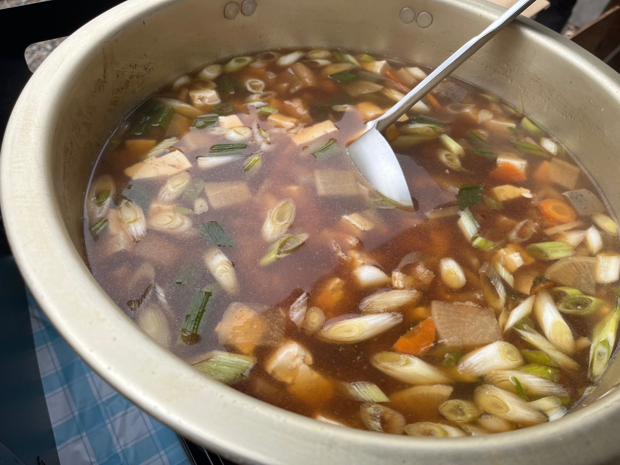 仲間のおばさまたちに助けられて、けんちんうどん、揚げパン、太巻き寿司で参加しました。朝4時から巻き寿司を巻いて巻いて25本!一人だとこれが限度です。